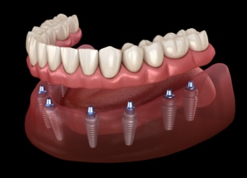Dentures that are only held in place with natural suction might slip and shift, but thanks to dental implants, you can get an entire row of new teeth that stays in place at all times. It normally takes around four to eight implants to keep full dentures anchored in the mouth.